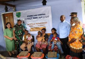 MANOKWARI - Senin (8/8/2022), Kodam XVIII Kasuari menyalurkan bantuan sembako kepada 3 Keluarga Stunting di kampung Gueintuy, Distrik Warmare Kabupaten Manokwari.