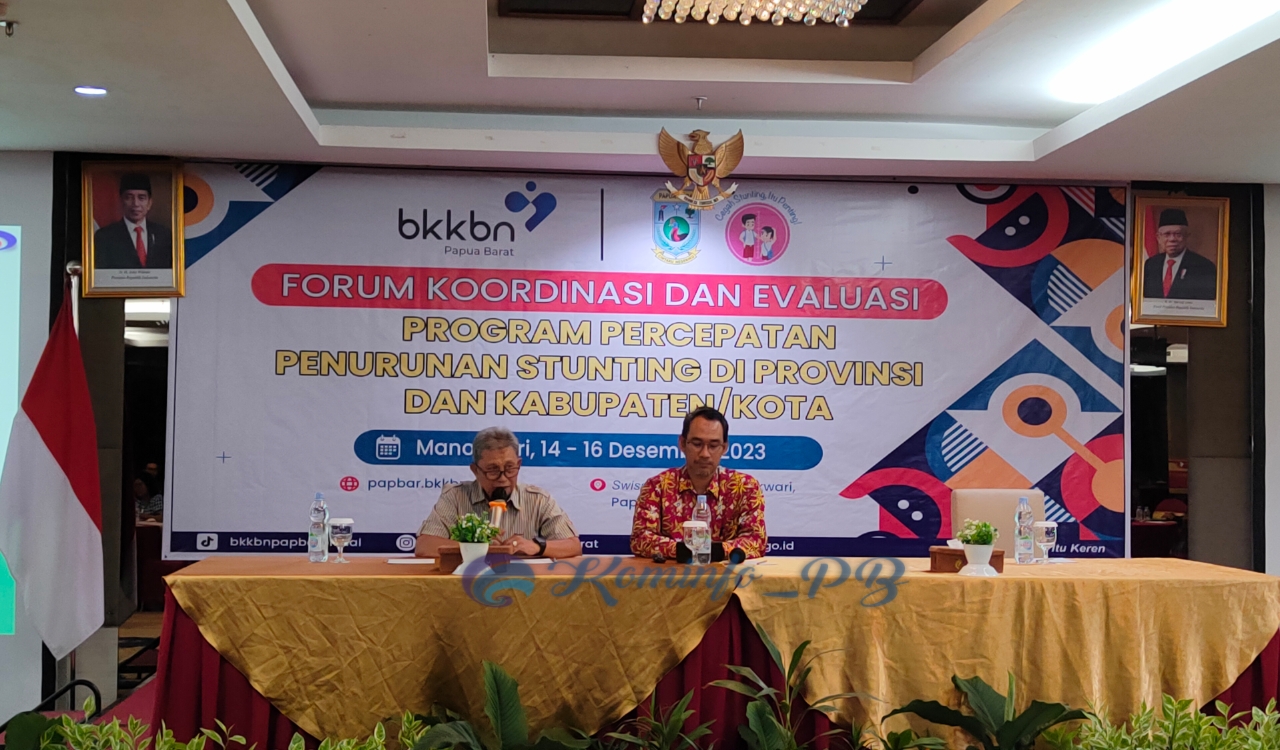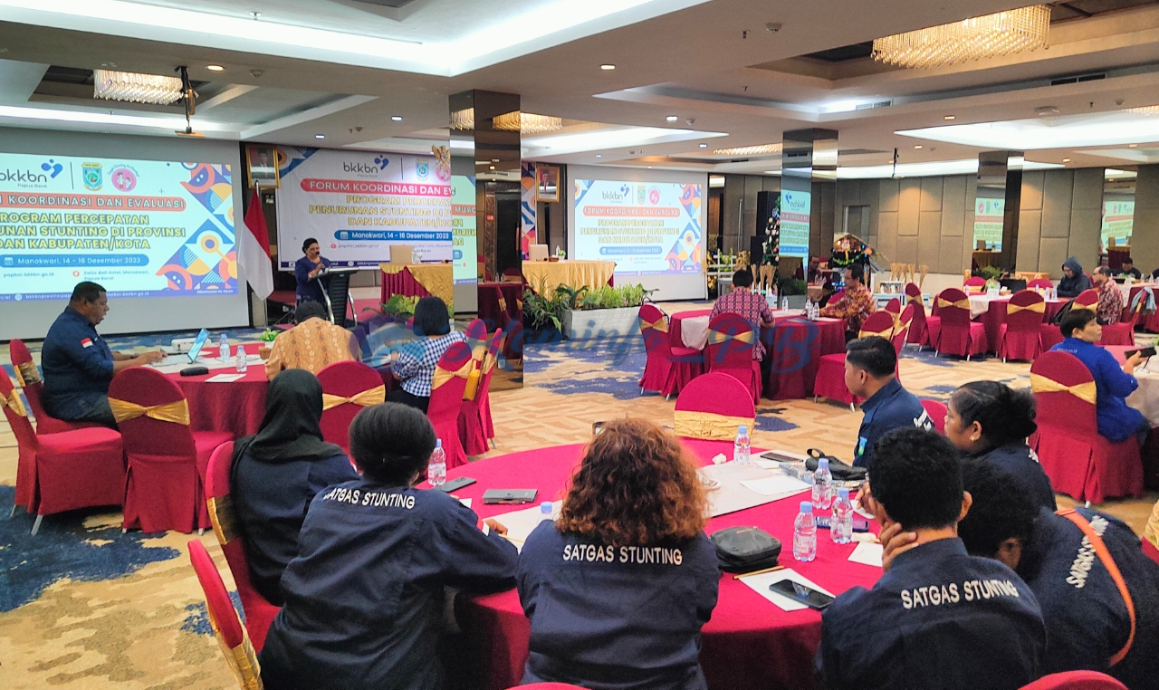 MANOKWARI - Badan Koordinasi Keluarga Berencana Nasional (BKKBN) Kantor Perwakilan Papua Barat menggelar forum koordinasi evaluasi program percepatan penurunan Stunting tingkat Provinsi dan Kabupaten/Kota. Agenda tersebut menindaklanjuti Peraturan presiden (Perpres) nomor 72 tahun 2021 tentang percepatan penurunan stunting, Jumat (15/12/2023) dipusatkan pada salah satu hotel.