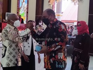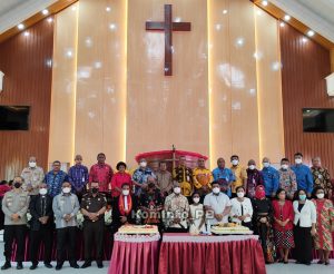 MANOKWARI - Momen perayaan hari ulang tahun ke-62 Gubernur Papua Barat, Drs. Dominggus Mandacan,M.Si mendapat kejutan istimewa. Pasalnya dirayakan segenap umat dan Forkopimda bertepatan dengan diresmikannya Gedung Gereja Baru Bahtera Pelepasan Mandopi, Kamis, (16/12/2021).