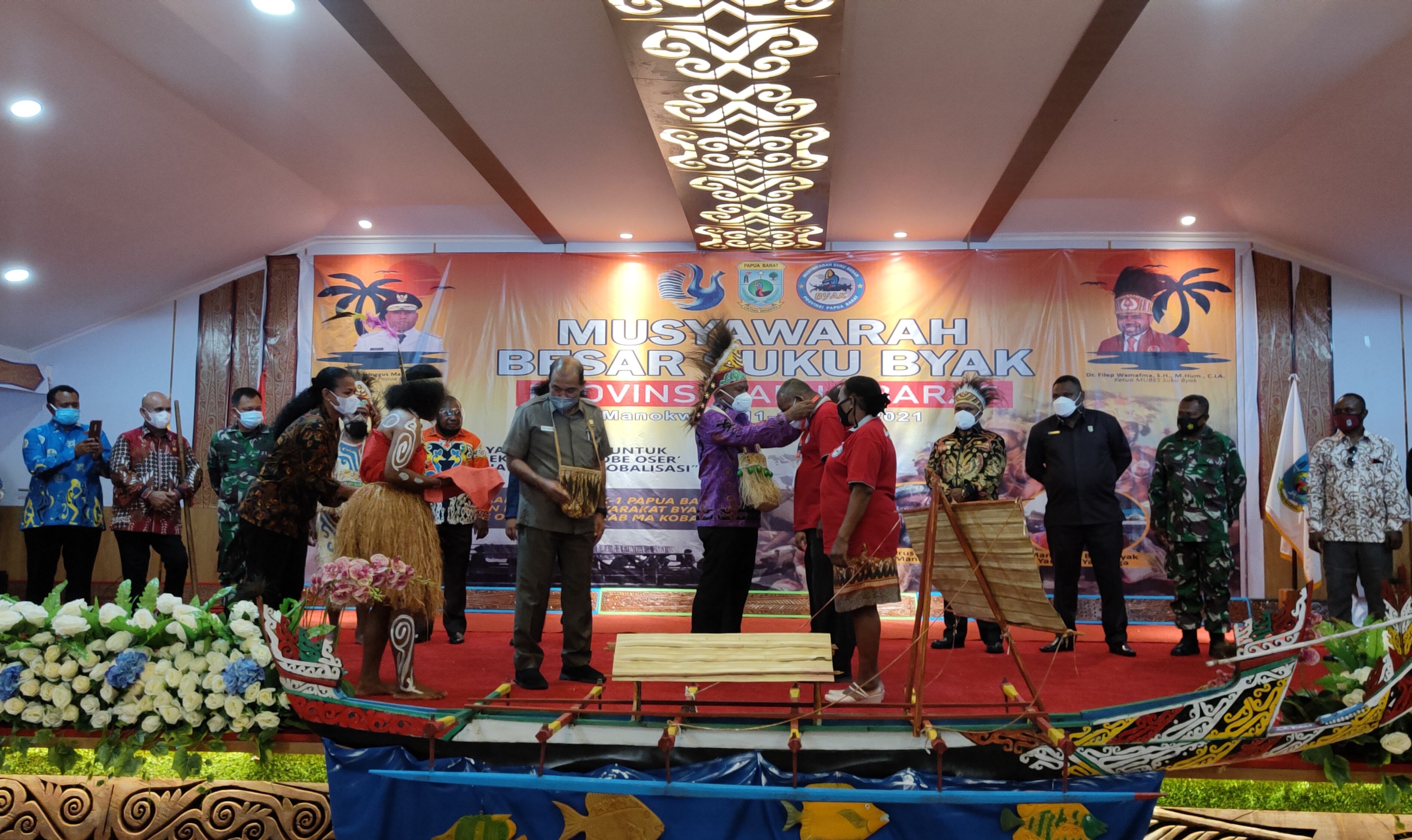 Dalam sambutannya Gubernur Dominggus Mandacan menjelaskan Resposisi masyarakat Byak dalam rangka mewujudkan eksistensi era globalisasi khususnya di Papua Barat akan menjadi tolak ukur bagi Suku yang ada di Tanah Papua. Penyelenggaraan Musda Ke-I Suku Byak memiliki fungsi dan peran strategis bagi pembinaan Suku Byak.