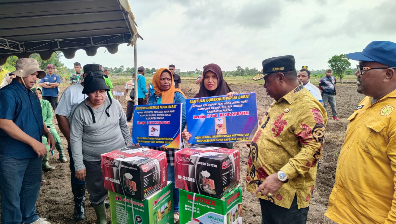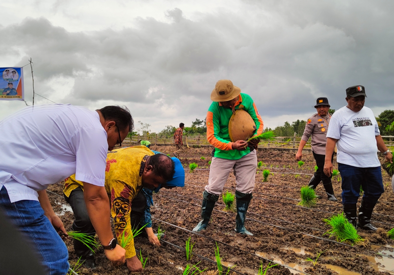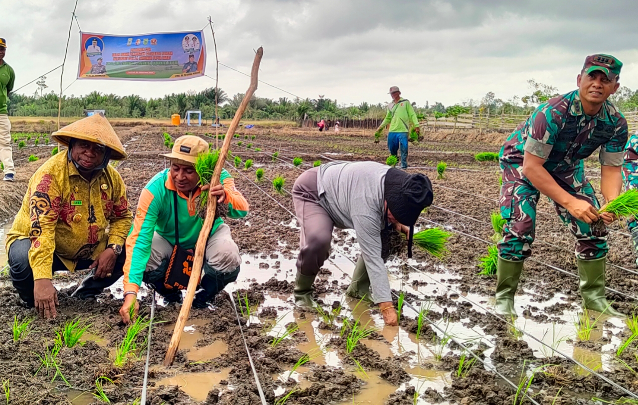 FAKFAK - Penjabat Gubernur Papua Barat, Drs. Ali Baham Temongmere,MTP dan Wakil Bupati Fakfak mencanangkan penanaman 1 hektar padi di SP 5 Distrik Bomberay. Agenda tersebut merupakan kolaborasi TNI bersama Pemerintah Kabupaten Fakfak demi peningkatan ketahanan pangan daerah, Kamis (8/2/2024).