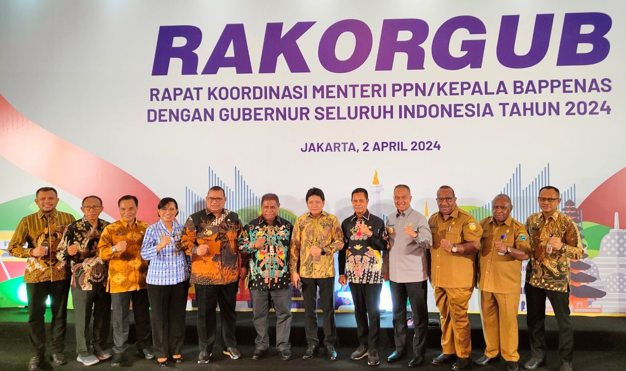 JAKARTA - Selasa (2/4/2024), Penjabat Gubernur Papua Barat, Drs. H. Ali Baham Temongmere,MTP mengemukakan pandangan Indonesia Emas 2045 melalui filosofi 1 tungku 3 batu saat Rakor bersama Menteri PPN/Kepala Bappenas RI yang dihadiri puluhan kepala daerah se-Indonesia. Disamping itu menjelaskan kondusifitas daerah dan meminta dukungan pemerintah pusat.