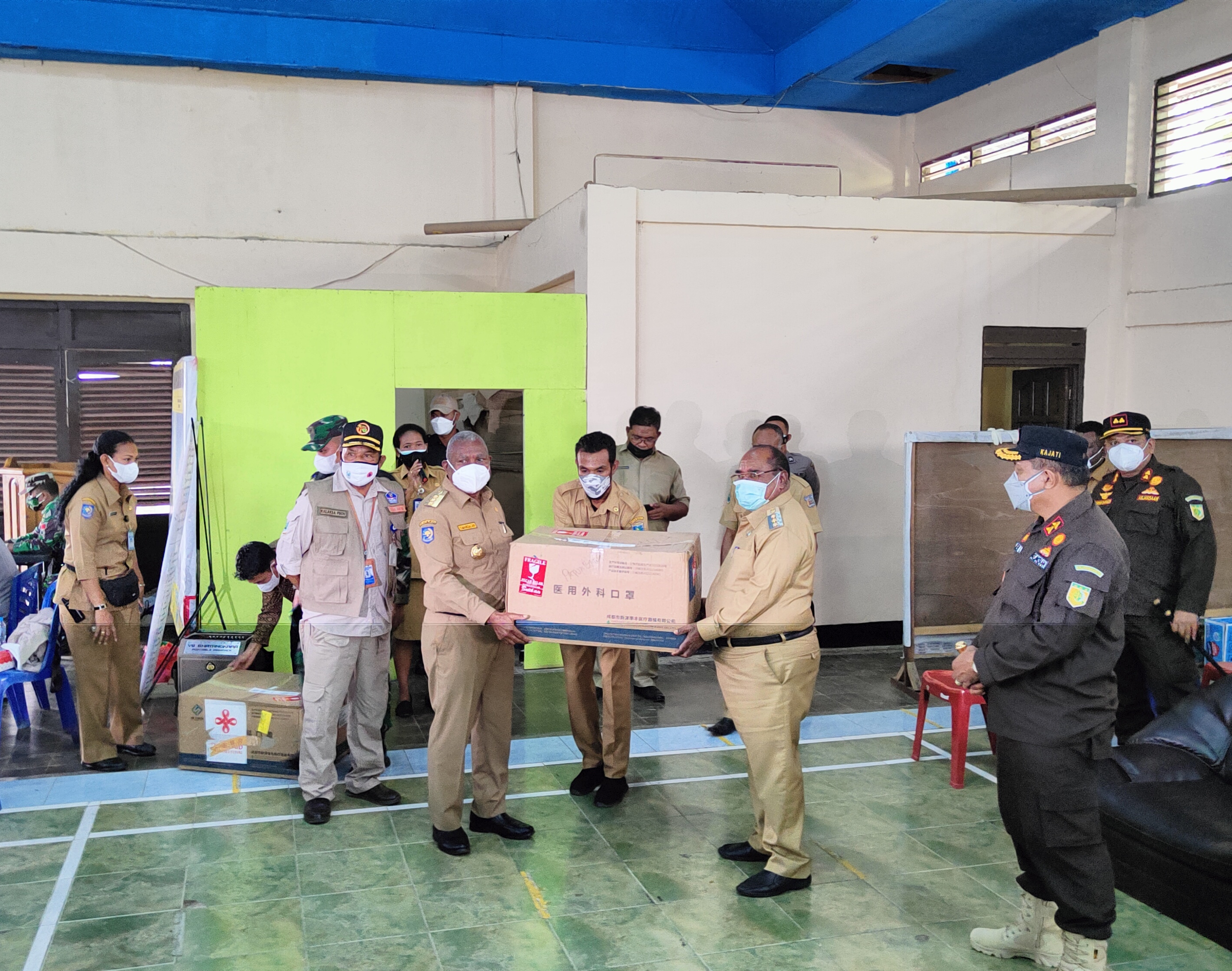 Gubernur Dominggus Mandacan juga menyerahkan 10.000 lembar masker dan diterima Walikota Sorong. [kpb_01]