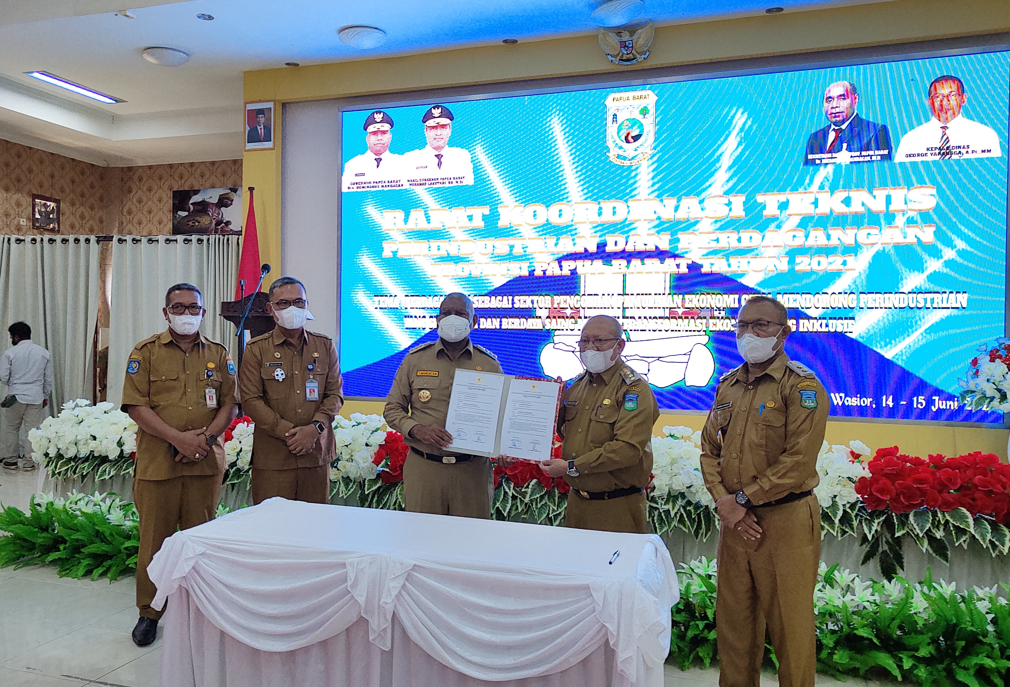 "Dasar pelaksanaan melalui DPA Dinas Perindustrian dan Perdagangan Provinsi Papua Barat nomor : 3.31.01.1.06.09 TA 2021. Memadu serasikan program dan kegiatan sektor Perindustrian dan Perdagangan bersama OPD tingkat Provinsi serta Kabupaten/Kota. Kita juga menghadirkan narasumber dari Kementerian Perindustrian dan Perdagangan, Bappenas dan Staf Khusus Presiden, Billy Mambrasar," Jelas Kadis Perindag Papua Barat, George Yarangga, A.Pi., MM.