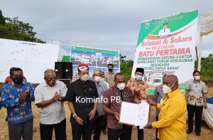 MANOKWARI- Jumat (10/9/2021) Telah Dilaksanakan Peletakan Batu Pertama Pembangunan Kantor Sekretariat Forum Kerukunan Umat Beragama (FKUB) Provinsi Papua Barat. Lokasi pembangunan berada di wilayah Kelurahan Amban, Distrik Manokwari Barat turut dihadiri para forkopimda.