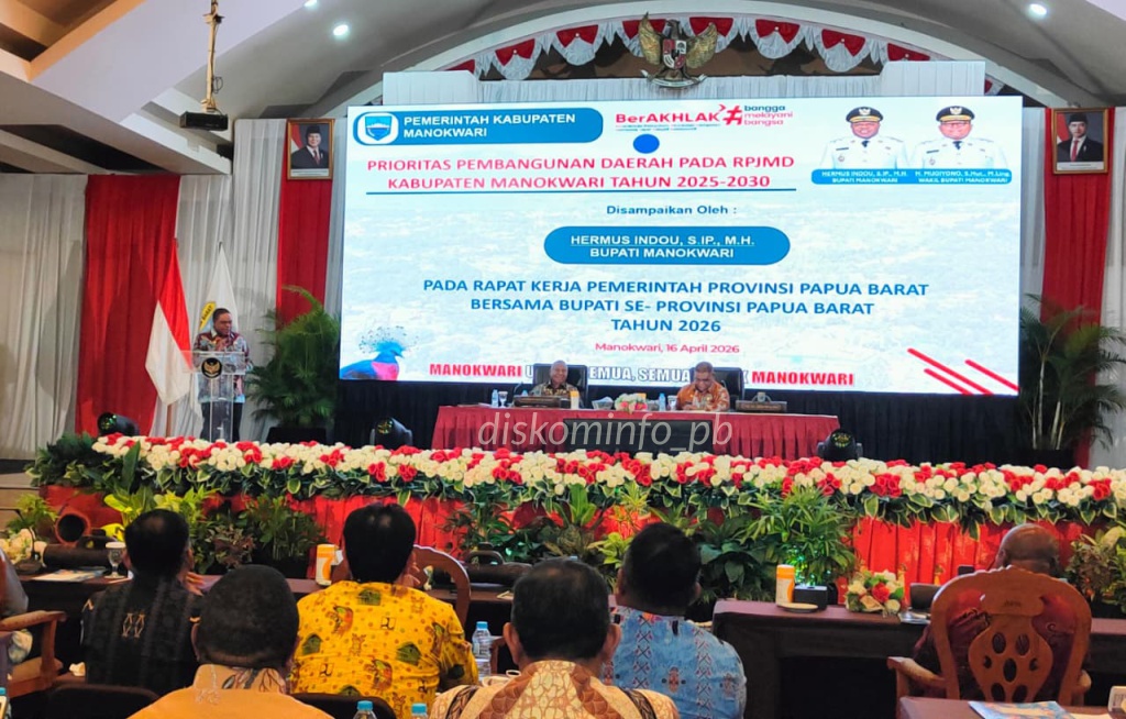 MANOKWARI, Media Diskominfo – Upaya memperkuat sinergi pembangunan daerah terus dilakukan Pemerintah Provinsi Papua Barat melalui forum strategis lintas kabupaten. Gubernur Dominggus Mandacan secara resmi membuka Rapat Kerja Pemerintah Daerah Papua Barat bersama Bupati se-Provinsi Papua Barat Tahun 2026, Kamis (16/04).