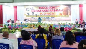 KOTA SORONG - Kerukunan Keluarga Kawanua Maesa Sorong (K3MS) menggelar perayaan paskah bersama tahun 2022. Acara yang berlangsung penuh hikmat diwarnai persembahan pujian sebagai bentuk penghargaan cinta kasih Kristus, Rabu (20/4/2022).