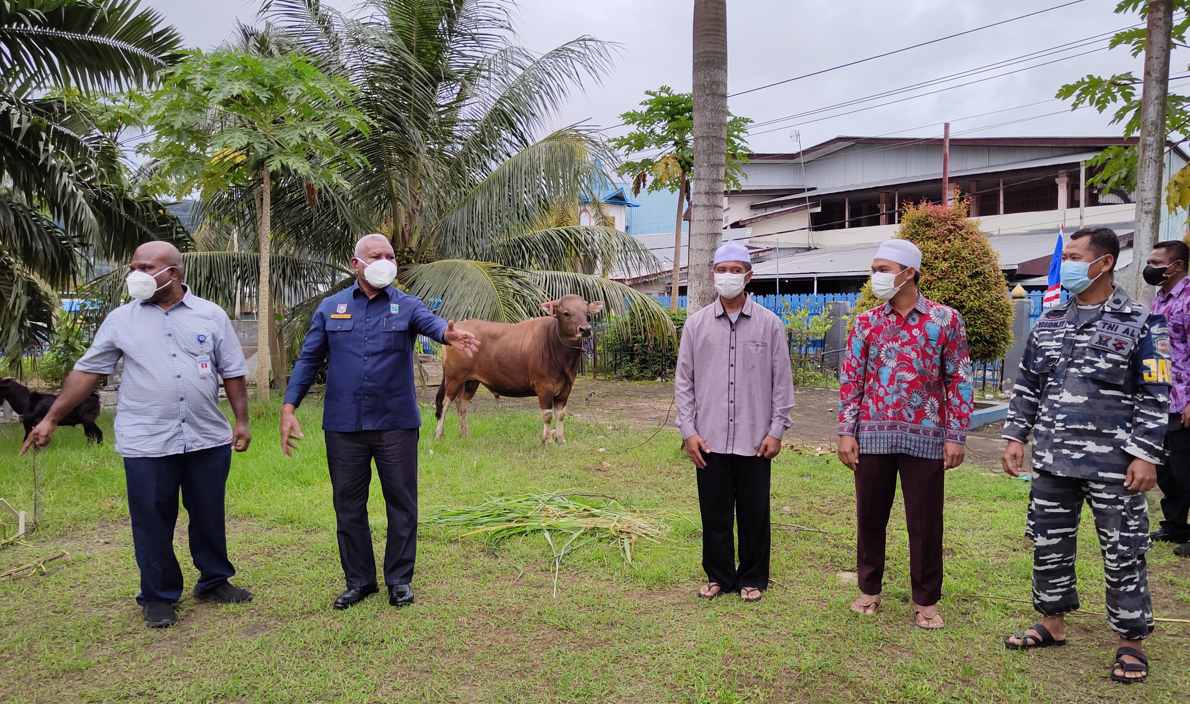 MANOKWARI- Minggu (18/7/2021), Gubernur Papua Barat, Drs. Dominggus Mandacan atas nama pemerintah menyerahkan secara simbolis hewan qurban di Kabupaten Manokwari berlokasi pada Masjid Ridwanul Bahri, Fasharkan.