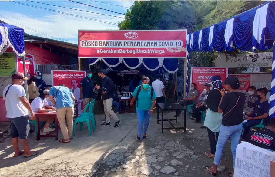MANOKWARI- Pemerintah Provinsi Papua Barat selalu mengedepankan semangat menekan angka penyebaran covid-19. Hari ini giliran lokasi kompleks Reremi, Distrik Manokwari Barat, menjadi pusat pelaksanaan vaksinasi massal gratis, Jumat (16/7/2021).