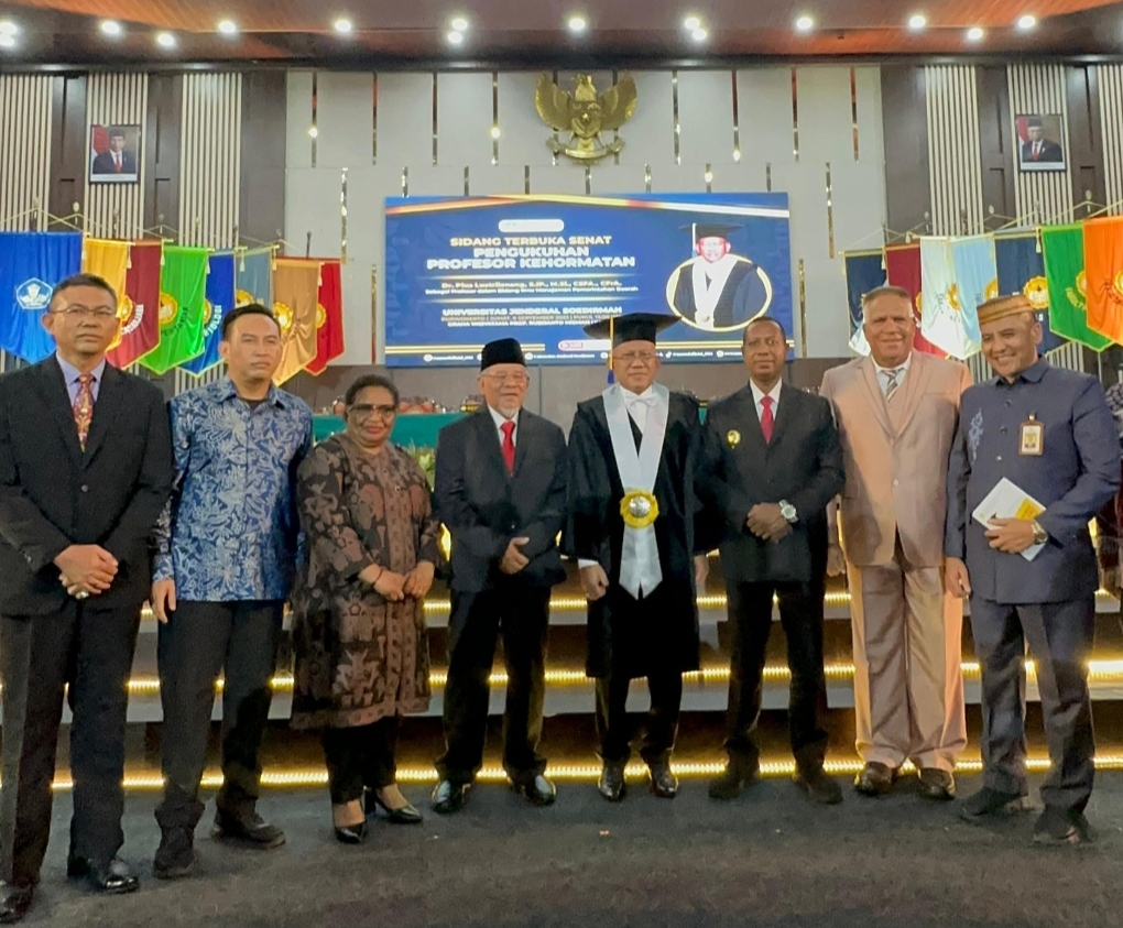 Purwokerto, - Gubernur Paulus Waterpauw mengucapkan selamat atas pengukuhan Pius Lustrilanang sebagai Guru Besar Ilmu Manajemen Pemerintah Daerah Universitas Jenderal Soedirman (Unsoed).