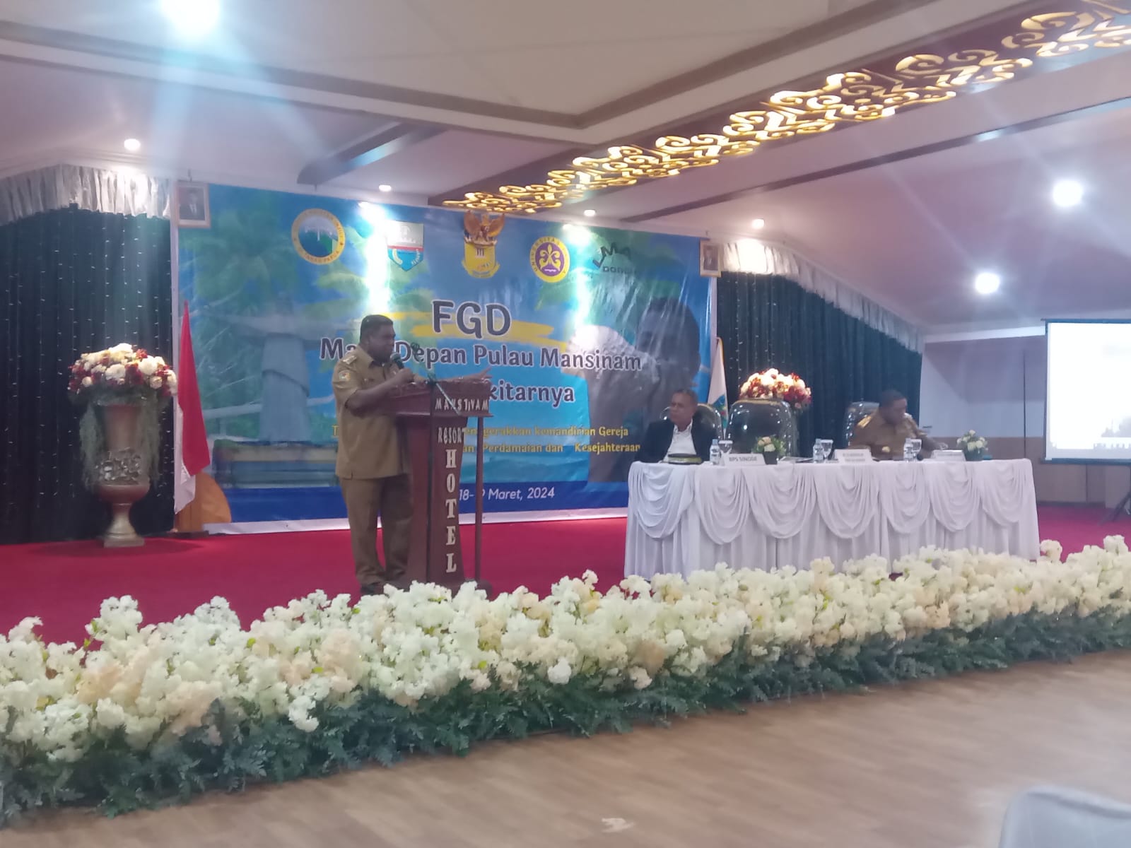 MANOKWARI-Penjabat Gubernur Papua Barat, H. Drs. Ali Baham Temongmere, MTP, menghadiri FGD ( Focus Group Disscusion ) tentang masa depan pulau Mansinam dan sekitarnya yang berlangsung pada salah satu hotel dalam kota Manokwari, senin, ( 18/03/2024 ).