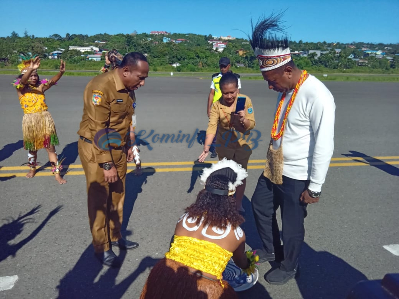 Sejumlah tamu tersebut disambut oleh para pejabat lingkup pemprov Papua Barat dengan tarian adat sanggar tari iriantos, prosesi pemberian mahkota dan injak piring.