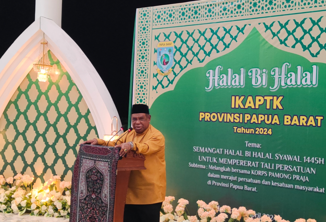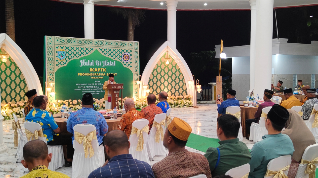 MANOKWARI - Selasa (23/4/2024), Ikatan Keluarga Alumni Pendidikan Tinggi Kepamongprajaan (IKAPTK) Papua Barat menggelar Halal Bi Halal sebagai wadah mempererat silaturahmi. Momentum istimewa tersebut dipusatkan pada Kediaman Gubernur Papua Barat, Susweni, diawali lantunan indah ayat suci Al-Qur'an oleh Ustazah Wardatun Nisa Hasan,S.Pd.