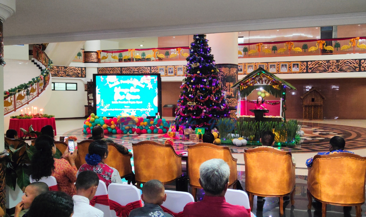 Membacakan sambutan tertulis Pj Gubernur, Plt. Sekda Papua Barat, Dr. Ir. Jacob Fonataba mengingatkan rekan saling menopang sehingga ada sukacita damai sejahtera senantiasa menaungi kehidupan. Dirinya memberi catatan, semangat kelahiran Yesus seyogianya dapat tinggalkan kebiasaan buruk, terutama ketidakdisiplinan dalam bekerja yang dapat mempengaruhi kinerja.