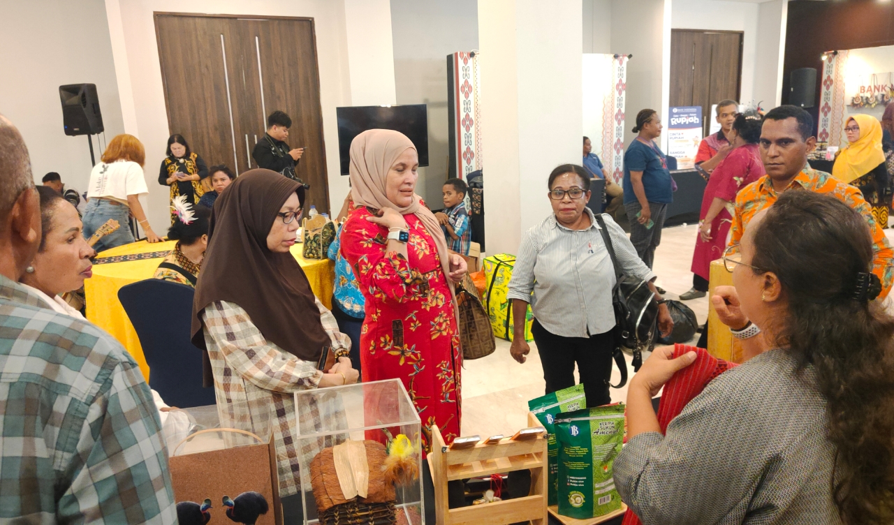 "Hari ini saya datang untuk pengecekan lomba kurasi UMKM dan diikuti seluruh Provinsi di Papua, khusus kita di Papua Barat menampilkan Batik, sabun pala, dan kerajinan daur ulang limbah," Singkatnya sembari mengajak para tamu sekira dapat menikmati pajangan asal Papua Barat.