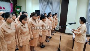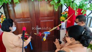 MANOKWARI - Ketua Dharma Wanita Persatuan (DWP) Papua Barat, Ny. Sulastri Mandacan melantik Ketua beserta pengurus Dharma Wanita Unsur Pelaksana Dinas PUPR Papua Barat. Agenda tersebut dilanjutkan peresmian gedung kantin, Jumat (25/2/2022).
