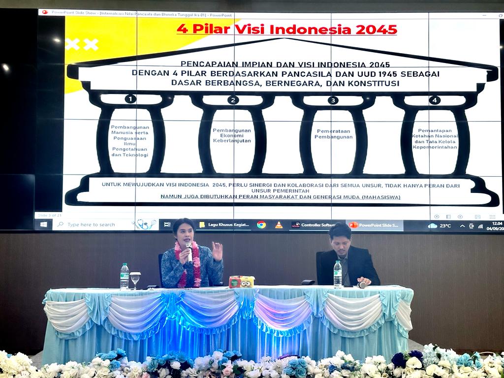 Roma Megawanty P S.kom M.si menjelaskan, Pencapaian Impian dan Visi Indonesia Tahun 2045 hanya bisa diraih dengan mengacu pada 4 Pilar Pembangunan yang berdasarkan Pancasila dan Undang-undang 1945 sbg dasar berbangsa, bernegara dan konstitusi.