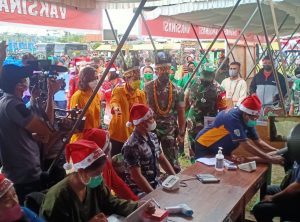 Selain peninjauan vaksinasi, Panglima TNI turut membagikan bingkisan Natal di sejumlah titik di Manokwari. [kpb_01]