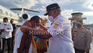 MANOKWARI - Penjabat Gubernur Papua Barat, Komjen Pol. (Purn) Drs. Paulus Waterpauw, M.Si menyambut kedatangan Menteri Investasi Republik Indonesia, Bahlil Lahadalia. Sekira pukul 07.15 WIT, rombongan menteri tiba menumpangi Private jet tipe N977HS, Rabu (15/6/2022).