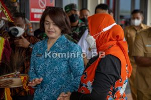 MANOKWARI - Ketua Umum Tim Penggerak PKK Pusat, Tri Tito Karnavian beserta rombongan Tiba di Manokwari, sekira pukul 08.00 WIT. Kehadirannya disambut Pj. Ketua TP PKK Papua Barat, Ny. Roma MP Waterpauw, Selasa (28/6/2022).