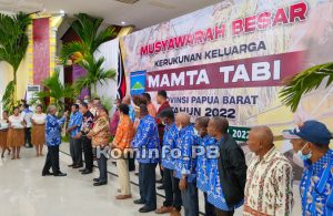 MANOKWARI - Kerukunan Keluarga Besar Mamta Tabi Provinsi Papua Barat menggelar musyawarah besar tahun 2022. Acara berlangsung hikmat dan dibuka secara resmi oleh Asisten II Bidang Ekonomi dan Pembangunan Setda Papua Barat mewakili Gubernur, Kamis (28/4/2022), bertempat di Aula Universitas Papua.