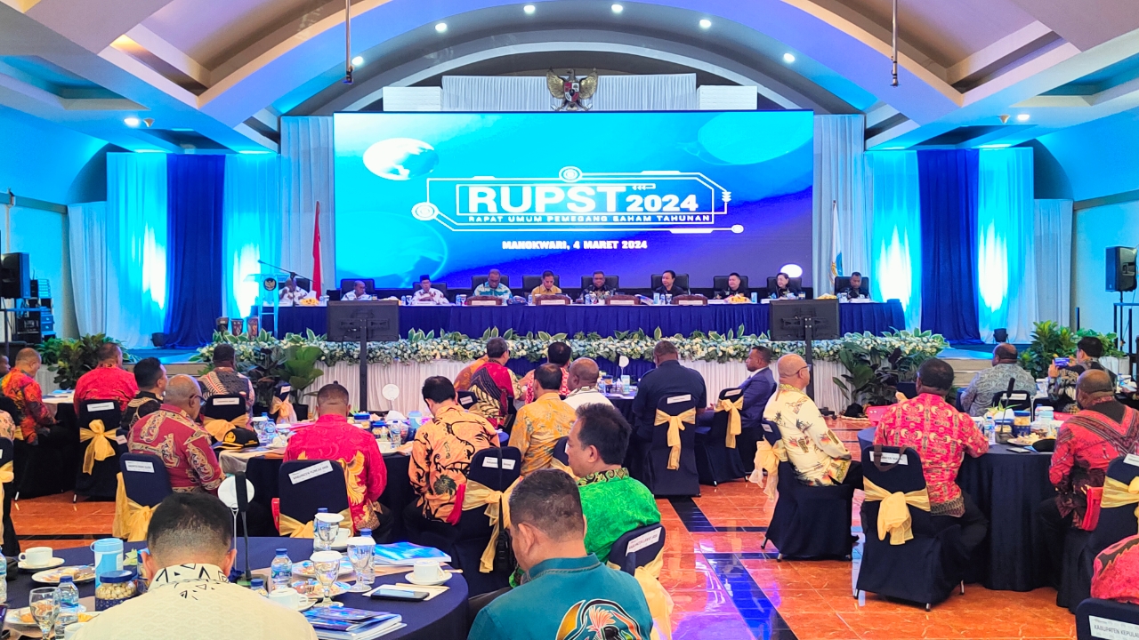 MANOKWARI - PT. Bank Pembangunan Daerah Papua menggelar Rapat Umum Pemegang Saham (RUPS) tahun buku 2023. Penjabat Gubernur Papua Barat, Drs. Ali Baham Temongmere,MTP turut menghadiri acara tersebut yang dipusatkan pada salah satu hotel, Senin (4/3/2024).