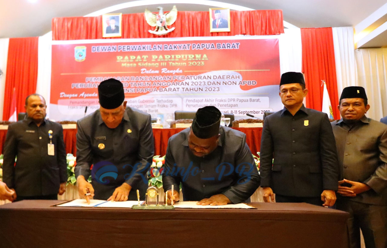 Manokwari- Penutupan Rapat Paripurna Masa Sidang III Tahun 2023 dalam Rangka Pembahasan Rancangan Peraturan Daerah Perubahan APBD Tahun Anggaran 2023 dan Non APBD Provinsi Papua Barat Tahun 2023. Senin, (11/09/2023), bertempat pada salah satu hotel.