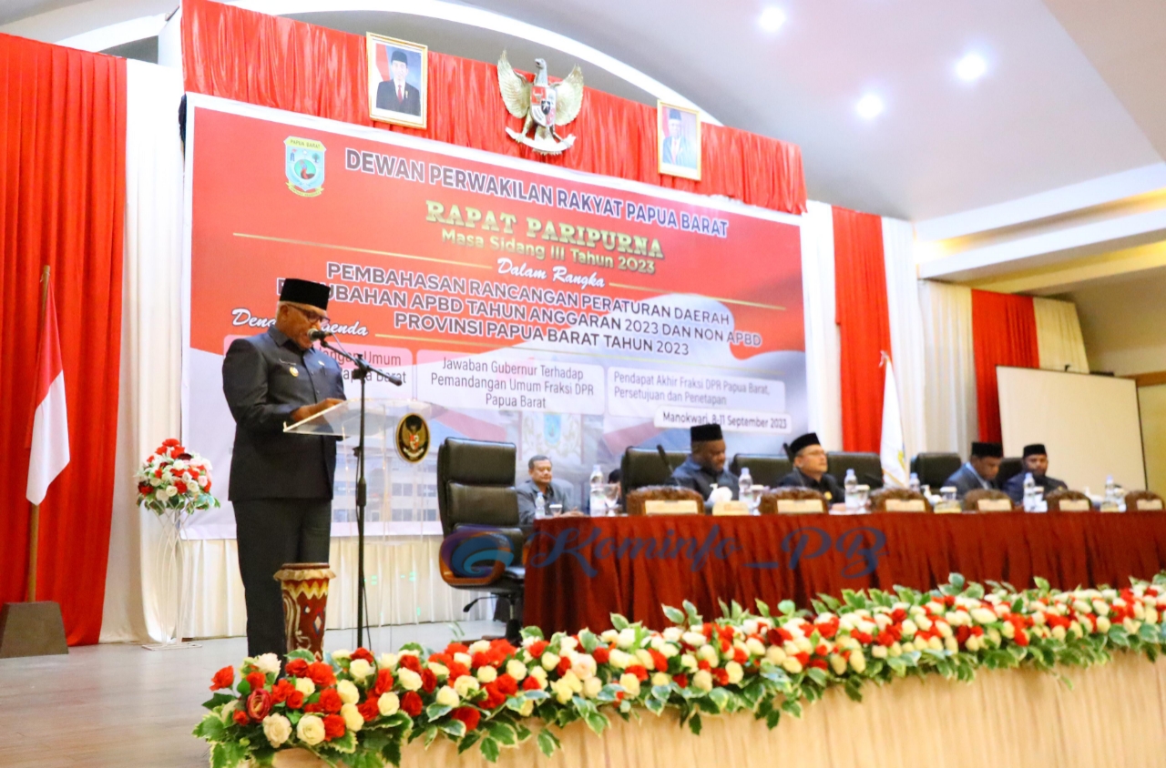 Penjabat Gubernur Papua Barat, Komjen Pol. ( Purn ) Drs. Paulus Waterpauw M.Si mengawali sambutannya dengan ucapan terimakasih kepada Pimpinan dan Anggota Dewan atas kerja keras yang telah dilakukan selama persidangan baik pembahasan secara Internal maupun dengan pihak Eksekutif.