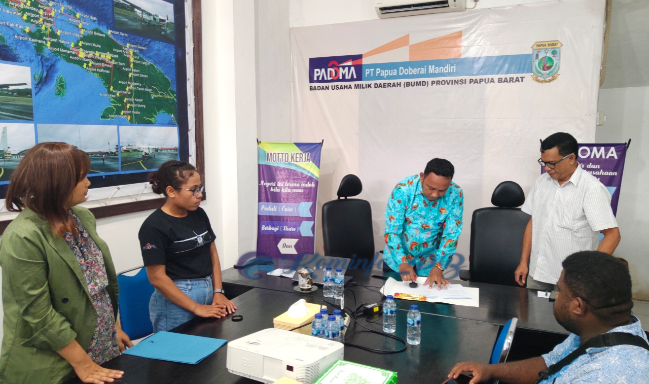 MANOKWARI - Jumat (29/12/2023), PT. Papua Doberai Mandiri (Padoma) sebagai Badan Usaha Milik Daerah (BUMD) Provinsi Papua Barat untuk pertama kalinya sejak berdiri tahun 2007 lalu, resmi memberikan pemasukan berupa Pendapatan Asli Daerah. Penyerahan deviden ini ditandai penandatanganan berita acara oleh Plt. Direktur Utama PT. Padoma, Allan Hursepuny yang diberikan kepercayaan sejak periode Juni 2023 lalu.