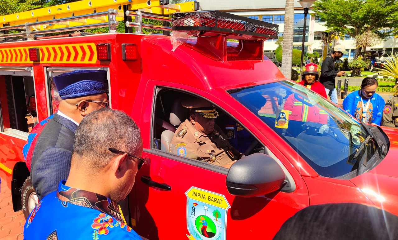 Pada momen spesial tersebut PT. Bank Pembangunan Daerah Papua menyerahkan bantuan csr 1 unit kendaraan pemadam kepada Pemerintah Papua Barat.