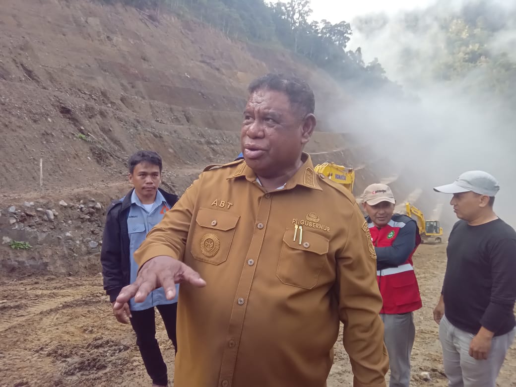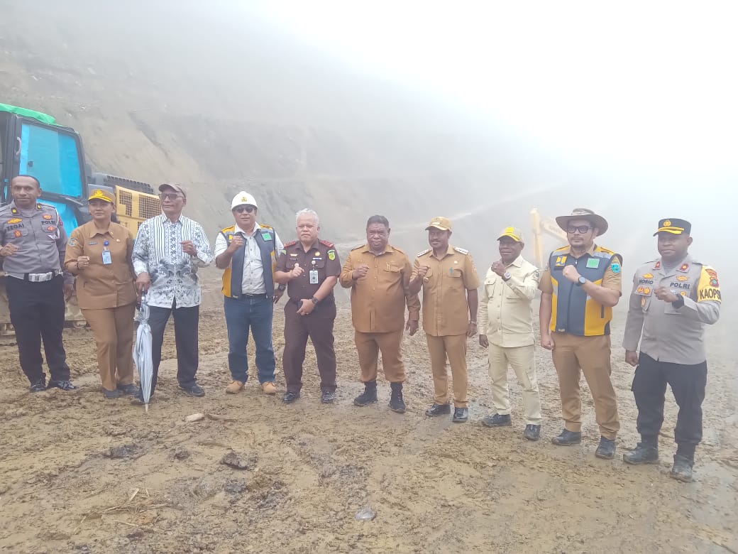Pj. Gubernur ABT Didampingi Unsur Forkopimda Pantau Langsung Pekerjaan Penggalian Longsor Jalan Minyambouw