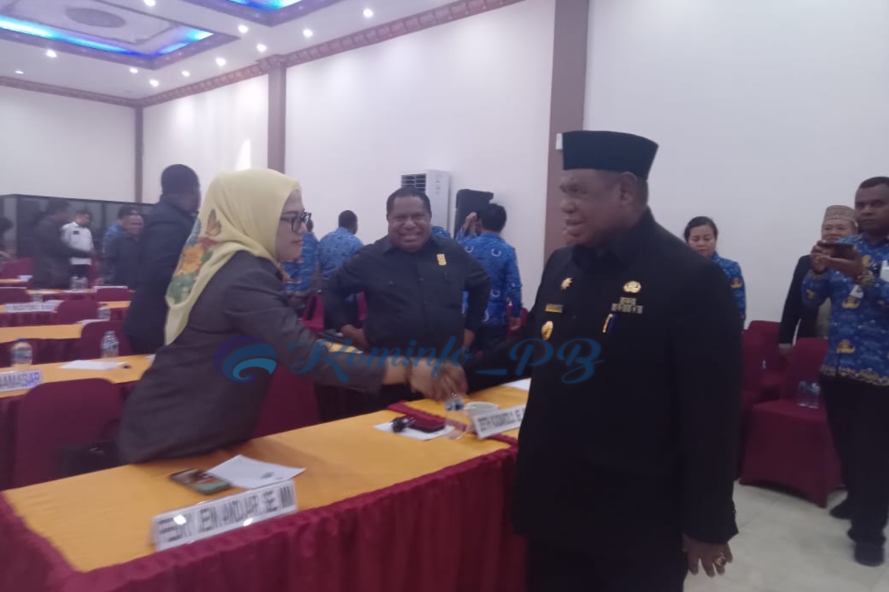 MANOKWARI-Penjabat Gubernur Papua Barat, Drs. Ali Bahan Temongmere, M.TP, dalam penyampaian jawaban atas pemandangan umum Fraksi-Fraksi terhadap penjelasan Gubernur terkait nota keuangan rancangan peraturan daerah ( Raperda ) APBD tahun anggaran 2024 yang disampaikan Pj. Gubernur sebelumnya.