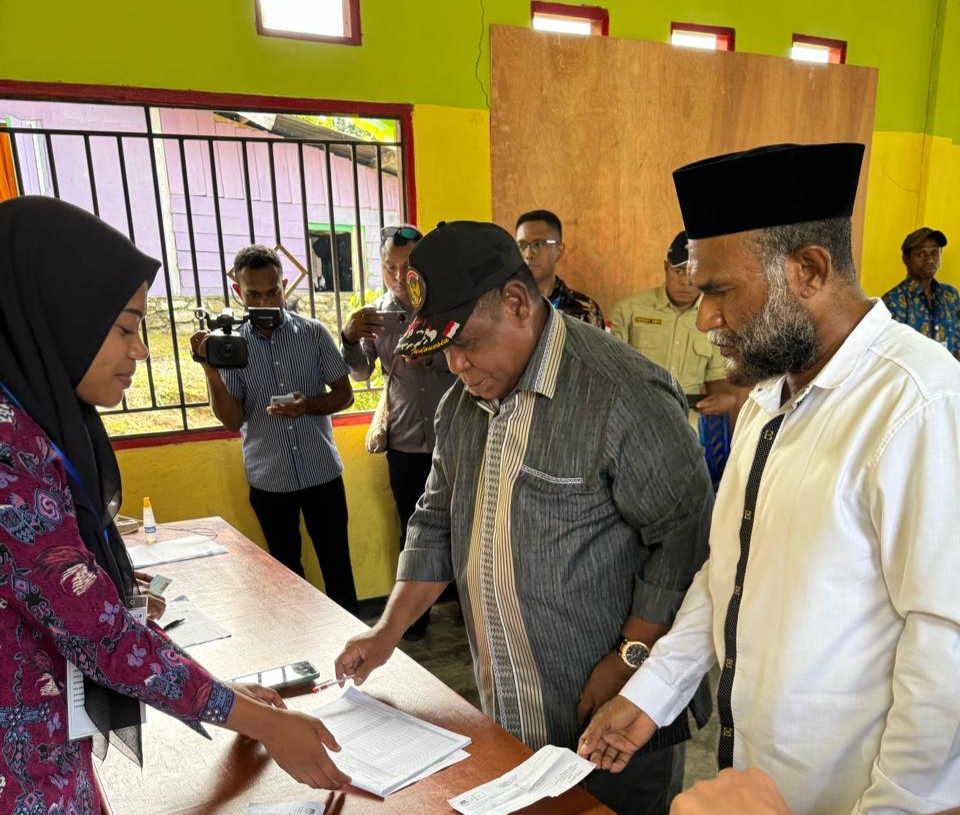 Pj. Gubernur Ali Baham Gunakan Hak Suara pada TPS 01 Kapaurtutin Kabupaten FakFak