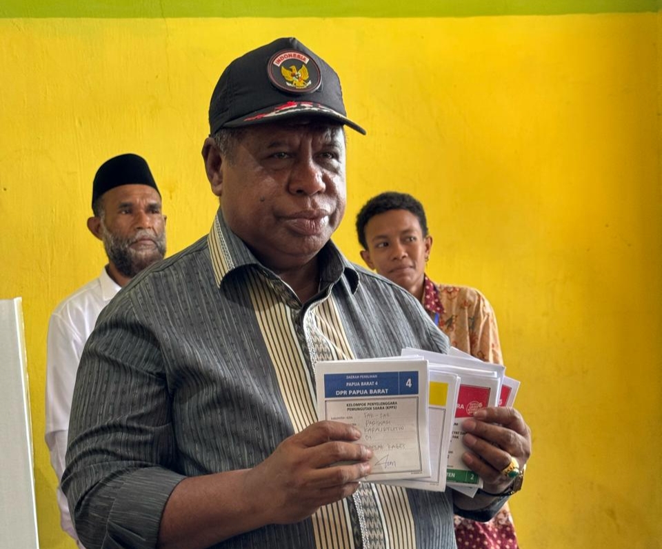 "Hari ini saya sebagai warga negara republik Indonesia yang dalam kedudukannya sebagai Penjabat gubernur Papua Barat telah menyalurkan hak suaranya di TPS satu, kampung Kapaurtutin, distrik Pariwari, kabupaten FakFak. Sebagai bukti, ini tanda di jari kelingking saya sudah saya masukan ke tinta, tandanya bahwa sudah selesai,"ungkap Pj. Gubernur Ali Baham.