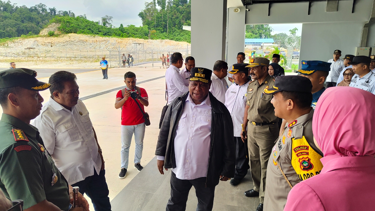 FAKFAK - Penjabat Gubernur Papua Barat, Drs. Ali Baham Temongmere,MTP didampingi Pj. Ketua TP PKK melakukan kunjungan kerja di Kabupaten Fakfak. Sesuai pantauan, dengan menumpangi maskapai penerbangan wings air mendarat di Bandara Siboru sekira pukul 11.55 WIT.