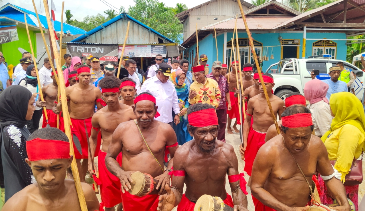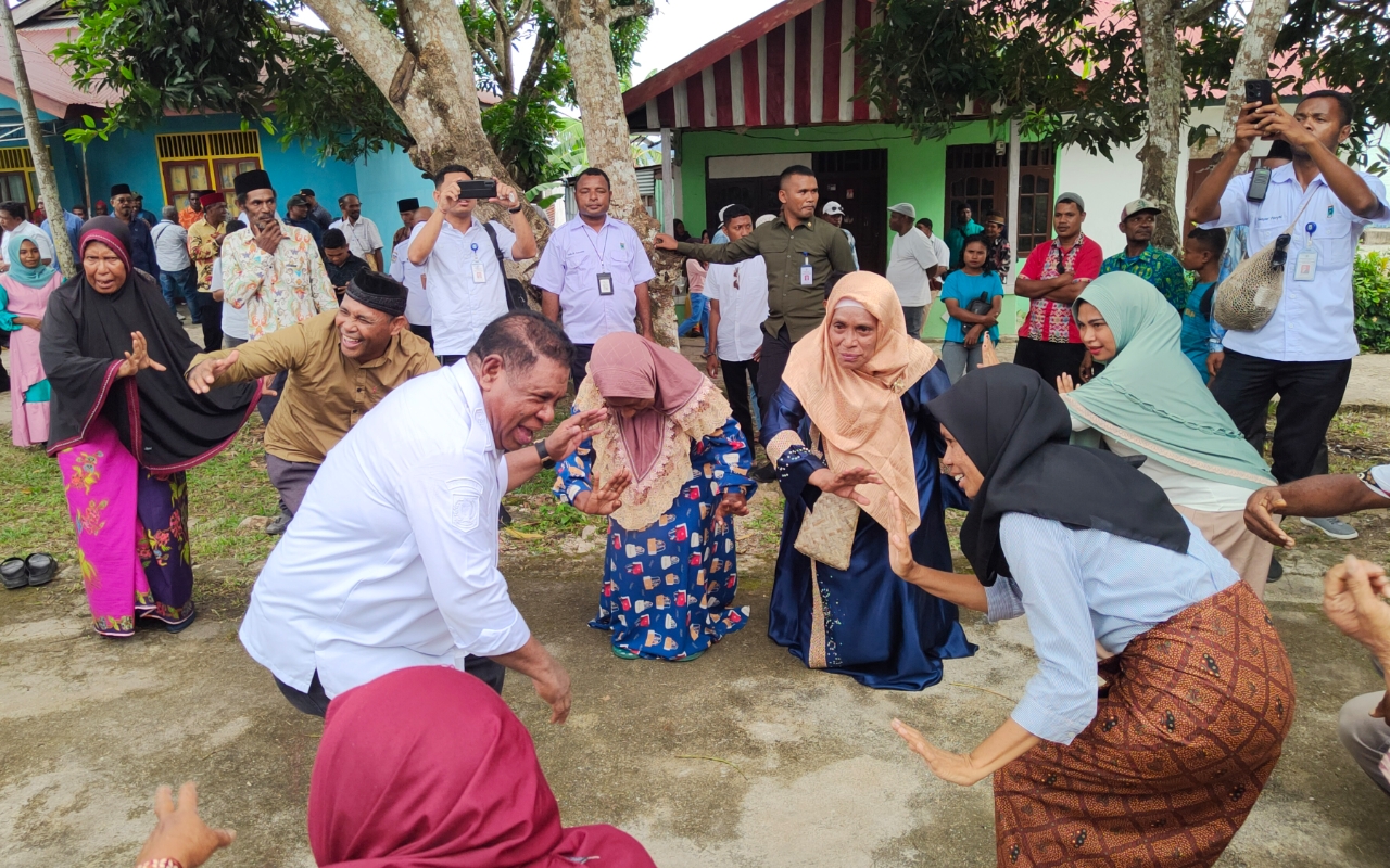 Usai acara, Penjabat Gubernur Ali Baham dan Pj. Ketua Tim Penggerak PKK, Ny. Siti Mardiana Temongmere bersama masyarakat menari Sawat dengan penuh kegembiraan.