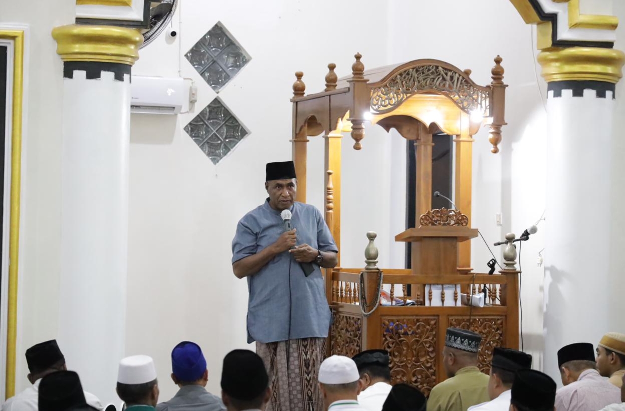 Pj. Gubernur Ali Baham Sholat Isya dan Tarawih di Masjid Nurul Fattah Manorian Reremi, Berikut Pesannya