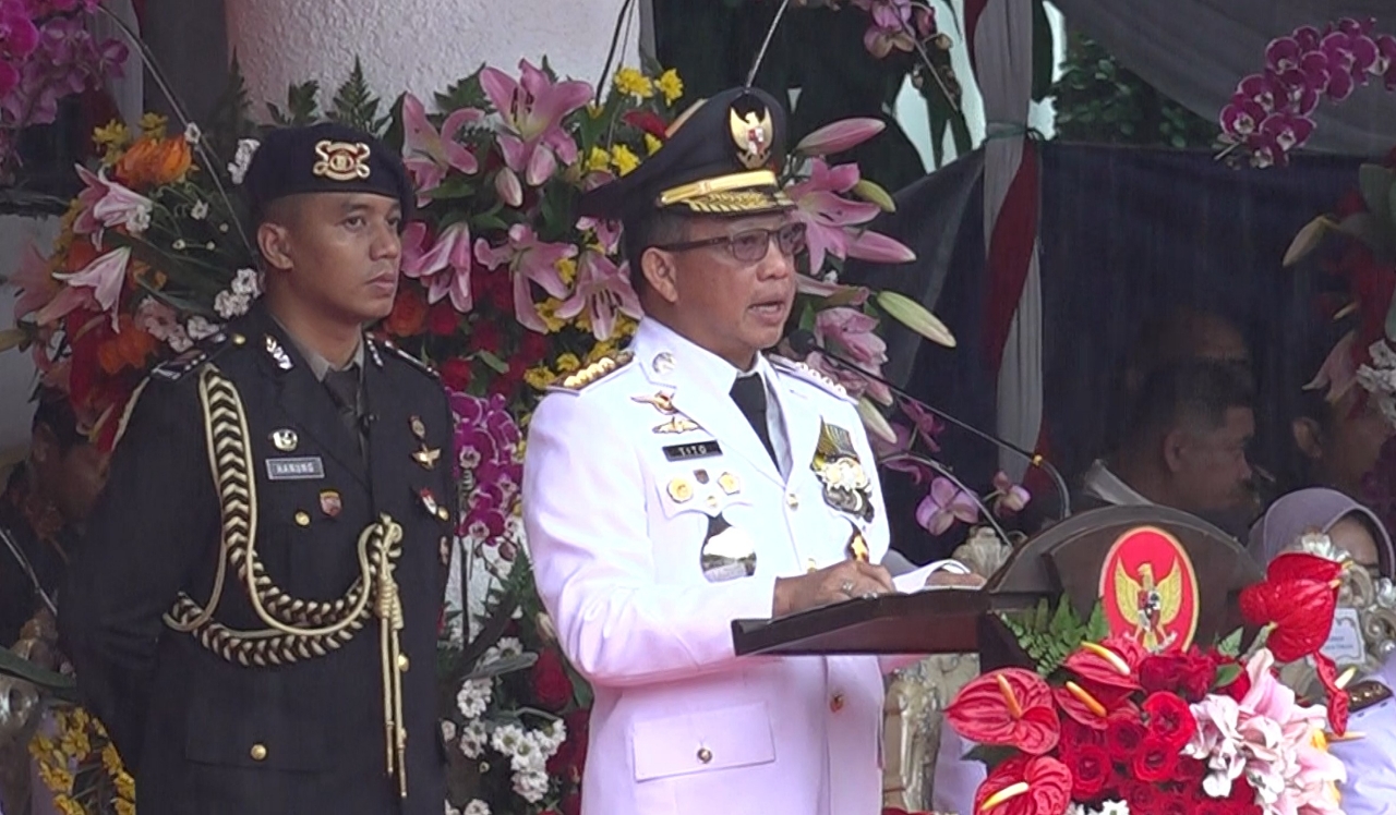 "Dalam konteks ini kita harapkan pemerintah daerah dapat berkontribusi mulai berorientasi mendukung pembangunan hijau dan biru. Terobosan positif sangat diperlukan, kesamaan mindset dan eksploitasi terhadap lingkungan harus dijaga, jangan berlebihan, tambang misalnya, harus disertai reboisasi dan rehabilitasi," Jelasnya saat memberi arahan pada peringatan HUT Otonomi Daerah Ke-28, Kamis (25/4/2023).
