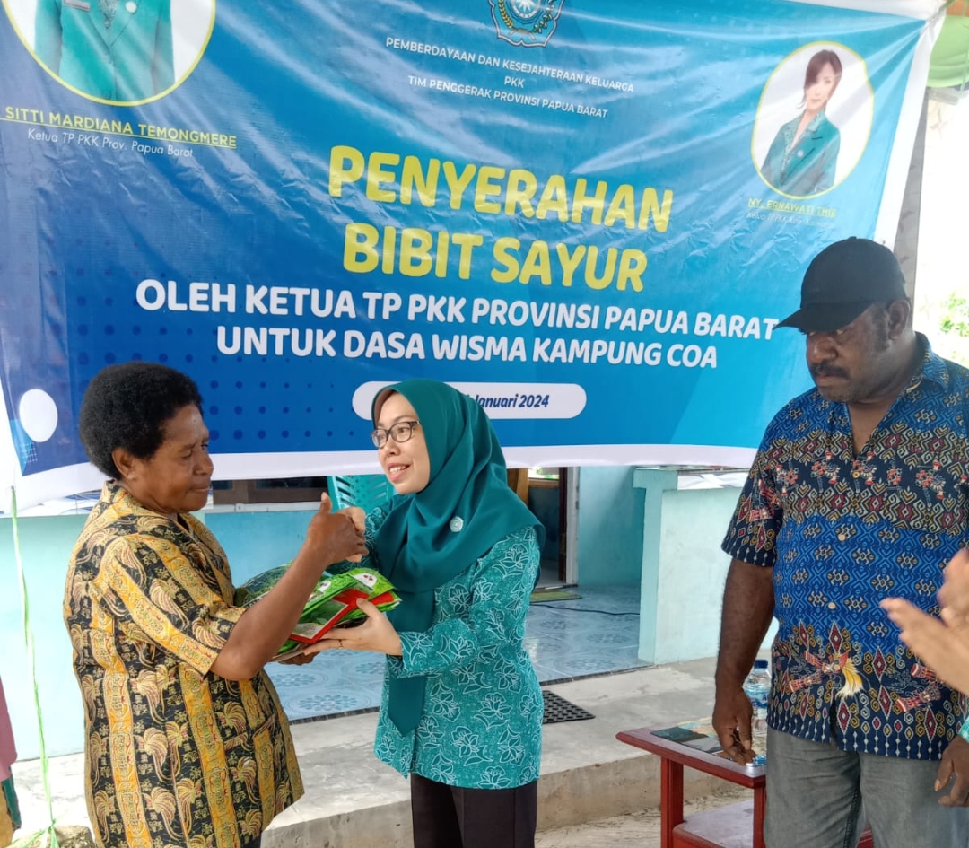 Pj. Ketua TP PKK Silaturahmi Bersama Kader Dasawisma Kampung Coa Kaimana dan Serahkan Bibit Sayur