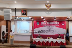SORONG SELATAN - Badan Kesatuan Bangsa dan Politik Provinsi Papua Barat melangsungkan agenda rapat koordinasi 12 Kabupaten dan 1 Kota. Rapat telah dibuka secara resmi oleh Bupati Kabupaten Sorong Selatan, Samsudin Anggiluli, Rabu (9/3/2022).