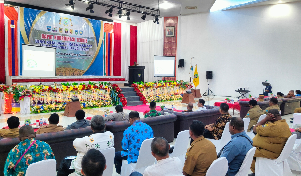 KAIMANA - Pemerintah Provinsi Papua Barat melalui Biro Kesejahteraan Rakyat menggelar rapat koordinasi teknis tahun 2024. Momen penting tersebut mengusung tema sentral meningkatkan integrasi yang bersinergi antara Biro Kesra Provinsi dan Bagian Kesra Se-Papua Barat, Selasa (21/5/2024) dipusatkan pada gedung pertemuan Krooy.