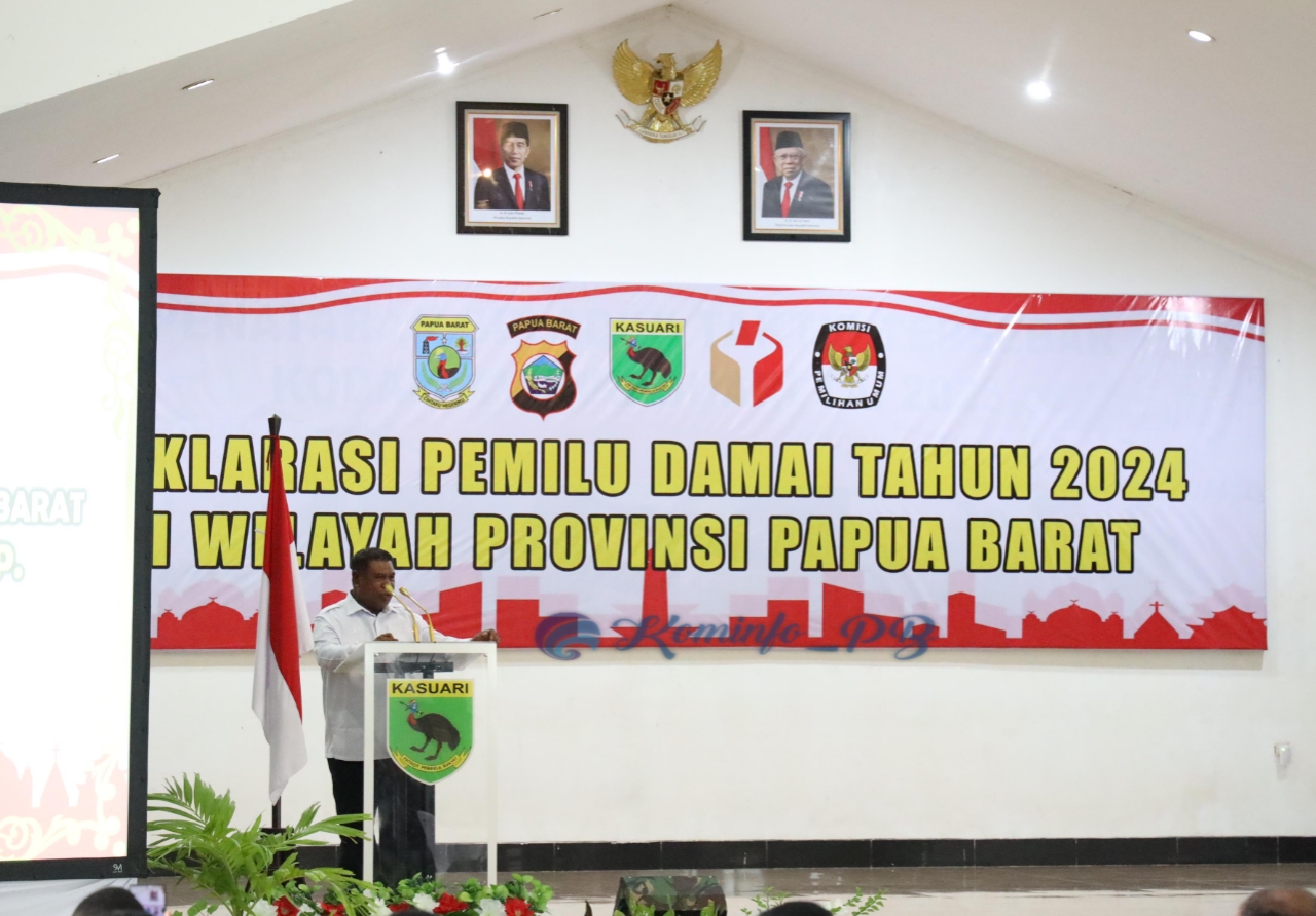 "Saya mengajak Bapak/Ibu sekalian di hari ini deklarasi pemilu damai kita tanamkan dalam hati sebagai wahana perhelatan kita di tanggal 14 Februari dan masa kampanye. Khususnya lagi masa perhitungan suara mari kita bawa suasana Papua Barat menjadi kota yang tenang, damai, provinsi menjadi contoh dengan keharmonisannya," Terangnya.