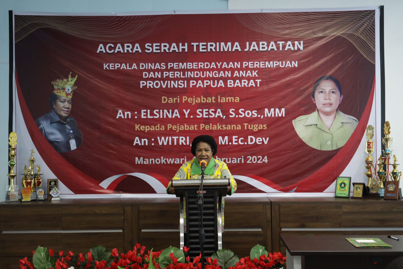 Manokwari (19/02/2023) Diawali dengan mengumandangkan lagu Indonesia Raya juga Papua Pulau Indah, Acara Sertijab dan Pisah Sambut Mama Elis (Sapaan Akrab Ibu Elsina Sesa) Kepala Dinas Pemberdayaan Perempuan dan Perlindungan Anak Provinsi Papua Barat berlangsung penuh haru.