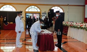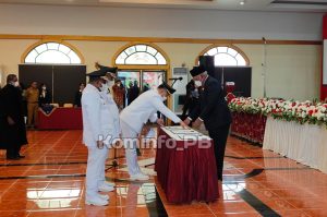"Dengan mengucapkan syukur kehadirat Tuhan yang Maha Esa, hari ini Selasa 23 Agustus 2022, Saya Penjabat Gubernur Papua Barat atas nama Presiden melantik saudara Yan Piet Moso,S.Sos,M.Si sebagai Penjabat Bupati Sorong, saudara George Yarangga,A.Pi.,MM sebagai Penjabat Walikota Sorong dan Saudara Dr. Bernhard E. Rondonuwu, S.Sos., M.Si, sebagai Penjabat Bupati Maybrat. Saya percaya saudara dapat menjalankan tugas sebaik-baiknya sesuai tanggungjawab yang diberikan," Ucap Pj. Gubernur Waterpauw saat melantik.