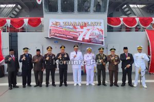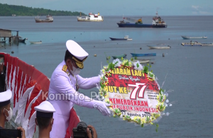 MANOKWARI - Rangkaian upacara memperingati kemerdekaan di Papua Barat berlanjut dengan Ziarah laut. Upacara dipimpin Panglima Koarmada III, Laksda TNI. Irvansyah, S.H., CHRMP., M.TR.Opsla, langsung dari atas Kapal KRI Teluk Lada (521), Rabu (17/8/2022) berlokasi di pelabuhan laut Fasharkan TNI AL.
